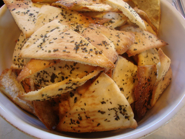 - Brush each piece pita pocket lightly with olive oil. Sprinkle the seasonings over the pita pockets. Also, different seasonings can be added or subtracted for alternate tastes.